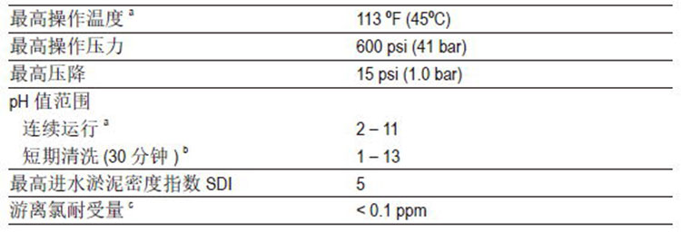 ● pH高于10條件下連續(xù)運(yùn)行的最高溫度為95°F(35°C)
