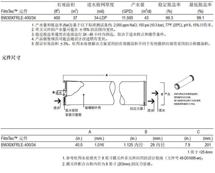 杜邦(原陶氏)BW30XFRLE-400,34i