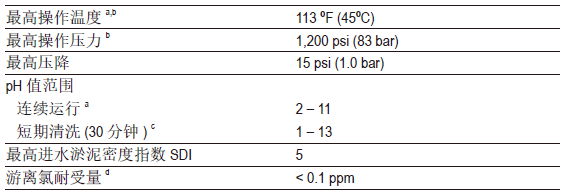 ● pH高于10條件下連續(xù)運(yùn)行的最高溫度為95°F(35°C),高于此溫度,請(qǐng)咨詢技術(shù)工程師獲取建議