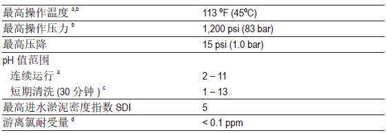 ● pH高于10條件下連續(xù)運(yùn)行的最高溫度為95°F(35°C),高于此溫度,請(qǐng)咨詢技術(shù)工程師獲取建議