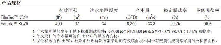 FilmTecTMFortilifeTMXC70元件的主要優勢包括: