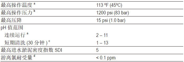 ● pH高于10條件下連續運行的最高溫度為95°F(35°C)