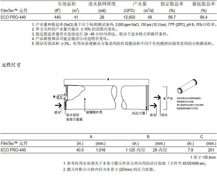 杜邦FilmTecTM ECO PRO-440元件具有優異的性能: