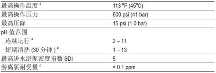 ● pH高于10條件下連續運行的最高溫度為95°F(35°C),高于此溫度,請咨詢技術工程師獲取建議