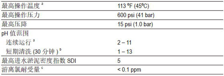 ● pH高于10條件下連續運行的最高溫度為95°F(35°C)