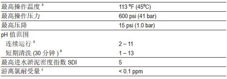 ● pH高于10條件下連續(xù)運行的最高溫度為95°F(35°C)