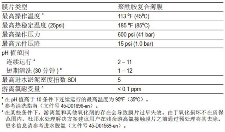 ● pH高于10條件下連續運行的最高溫度為95°F(35°C),高于此溫度,請咨詢技術工程師獲取建議