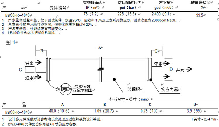 ? 陶氏BW30FR-4040成為目前反滲透膜工業界公認的抗污染、性能穩定、產水水質高的反滲透膜元件標準。
