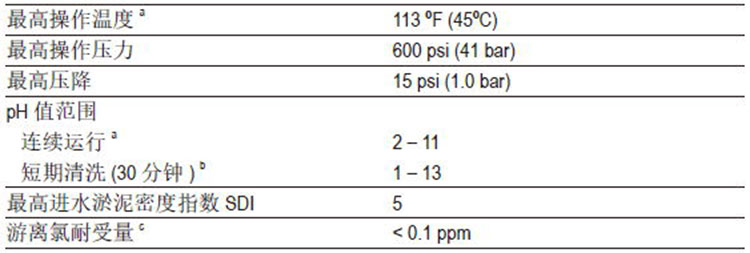 ● pH高于10條件下連續運行的最高溫度為95°F(35°C)