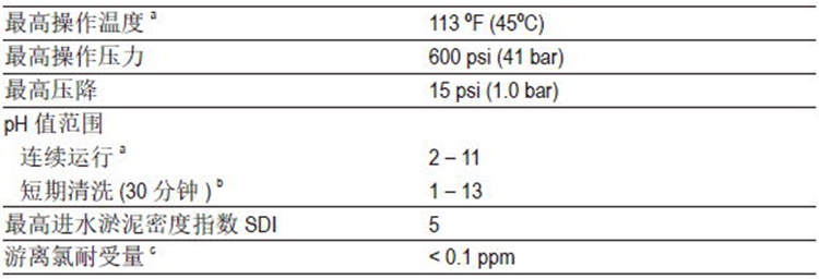 ● pH高于10條件下連續(xù)運(yùn)行的最高溫度為95°F(35°C)