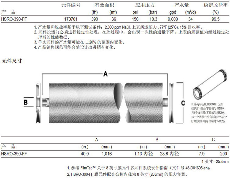 ● 膜兩側(cè)的壓差必須小于25psi ( 1.7bar)