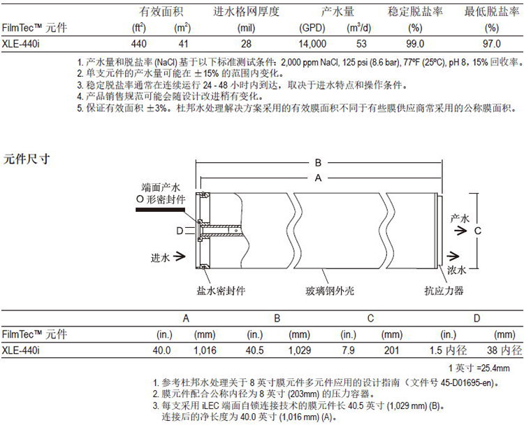 杜邦FilmTecTM XLE-440i是最低壓力的FilmTecTM反滲透元件: