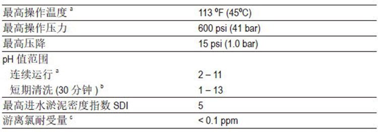 ● pH高于10條件下連續運行的最高溫度為95°F(35°C),高于此溫度,請咨詢技術工程師獲取建議