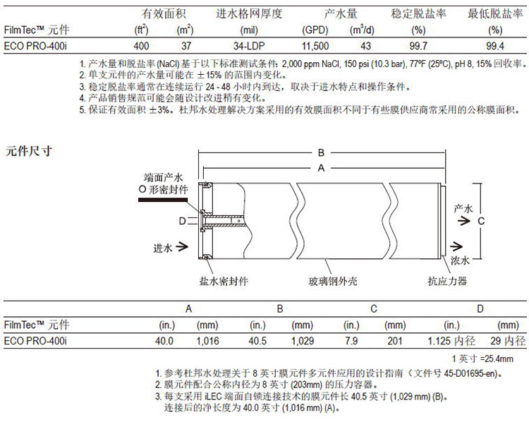 杜邦FilmTecTM ECO PRO-400i元件具有優(yōu)異的性能: