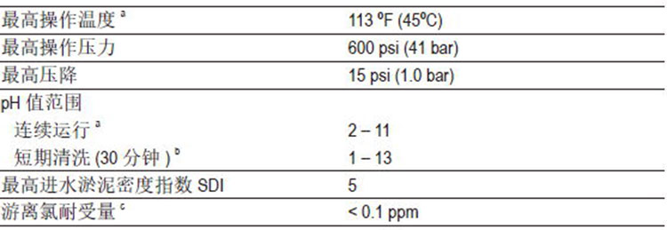 ● pH高于10條件下連續(xù)運(yùn)行的最高溫度為95°F(35°C),高于此溫度,請(qǐng)咨詢技術(shù)工程師獲取建議