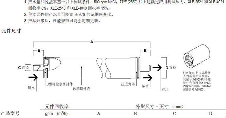 新一代杜邦FilmTecTM XLE元件以其極低的運行壓力為客戶提供最好的系統綜合性能及運行經濟性。XLE膜元件采用了新型專利技術,提供始終如一的可靠系統性能。更方便的是,FilmTecTM XLE元件在干膜狀態下可實現快速啟動(見圖2)。新XLE系列元件替代了采用舊膜技術制造的TW30LE元件。