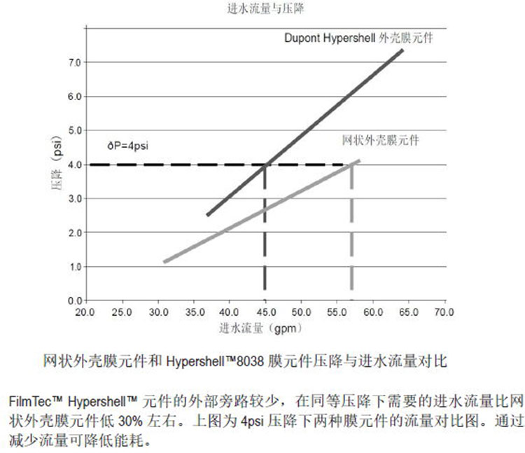 FilmTecTM HypershellTM RO-390-FF產品在產水拋光應用上是業內首屈一指的膜產品。與同類競爭產品相比,FilmTecTM HypershellTM RO-390-FF具有更大的有效膜面積,因此在產水拋光應用中所需元件較少,從而最大化性能,同時降低了投資成本。