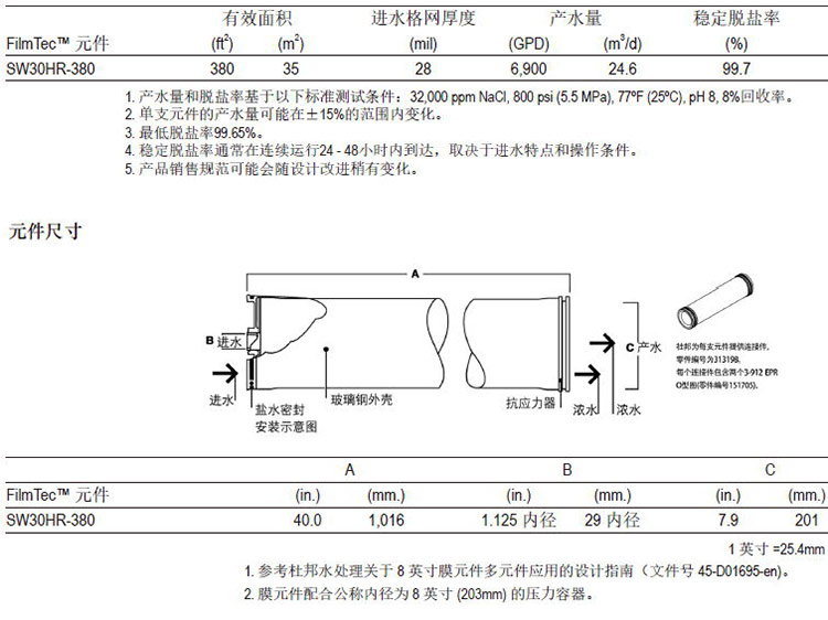 杜邦FilmTecTM SW30HR-380元件具有高脫硼率,可以幫助客戶滿足世界衛(wèi)生組織(WHO)的標(biāo)準(zhǔn)及其他飲用水標(biāo)準(zhǔn)。