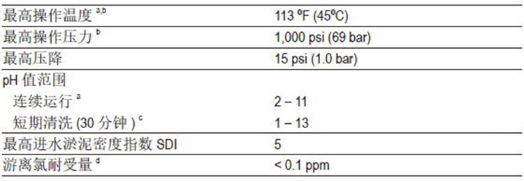 ● pH高于10條件下連續(xù)運行的最高溫度為95°F(35°C),高于此溫度,請咨詢技術(shù)工程師獲取建議