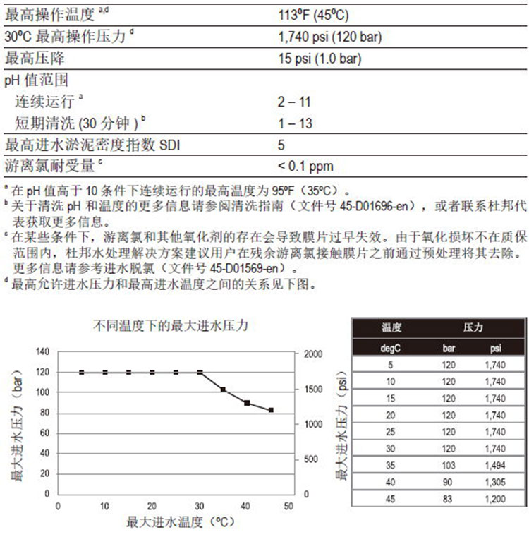 ● pH高于10條件下連續(xù)運(yùn)行的最高溫度為95°F(35°C),高于此溫度,請(qǐng)咨詢(xún)技術(shù)工程師獲取建議