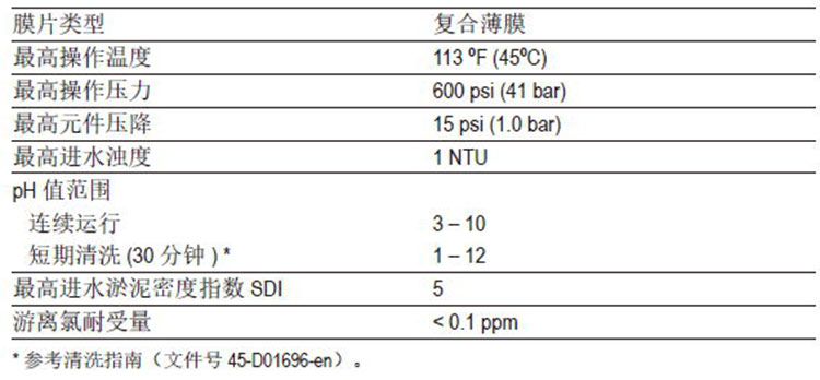 ● 這些膜元件高通量高,產(chǎn)品水水質(zhì)極高,適合于要求衛(wèi)生級(jí)膜元件的應(yīng)用