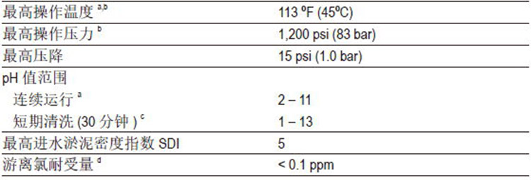 ● pH高于10條件下連續運行的最高溫度為95°F(35°C),高于此溫度,請咨詢技術工程師獲取建議