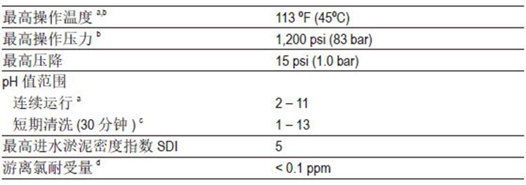 ● pH高于10條件下連續運行的最高溫度為95°F(35°C),高于此溫度,請咨詢技術工程師獲取建議